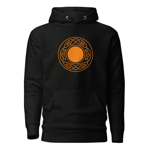 The moon is a timeless beacon, guiding travelers and pilgrims through the quietest and most contemplative stages of their journey. In our Celtic Moon design, the crescent moon is centered within an intricate, unending Celtic knotwork circle, radiant in a warm orange hue. This powerful graphic represents the unending cycle of life, inner wisdom, and the cosmic guidance we often seek on the road. Placed on this heavy-duty hoodie, it’s a wearable tribute to ancient knowledge and the deep connection between the trail and the cosmos.