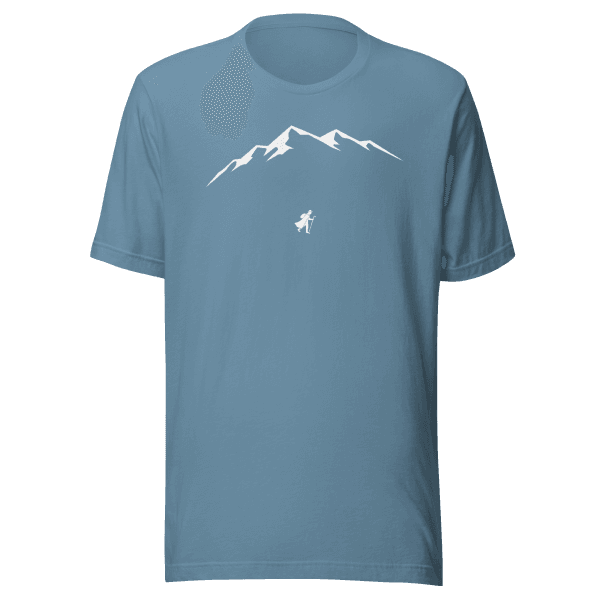 You are standing at the base of a final, daunting mountain pass. The design features a majestic mountain range dominating the chest, with a small, persistent pilgrim figure making their way across. This minimalist graphic captures that specific, hard-won moment of reflection known to every traveler—”Nearly There?” It requires persistence and one final push to arrive. Placed on this premium staple tee, it serves as a wearable tribute to the resilience required to complete any significant journey.