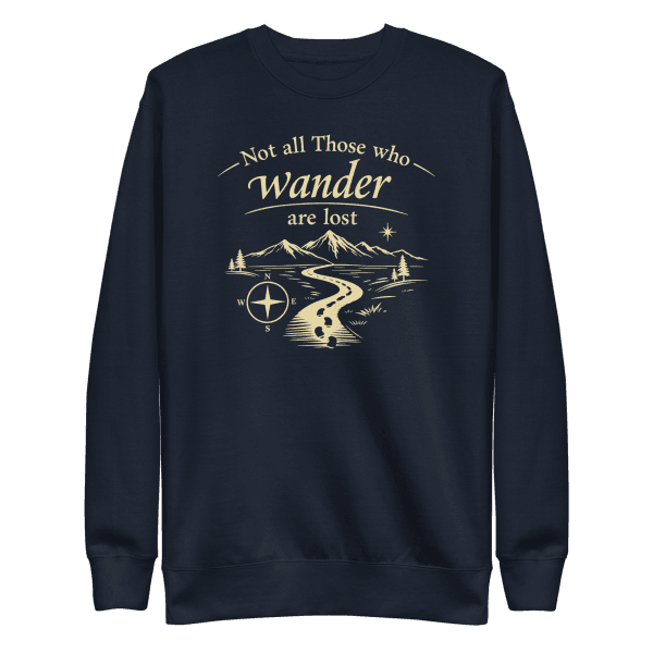 A timeless design inspired by the spirit of the Camino de Santiago, featuring a winding path through mountains, guiding footprints, and a compass beneath the phrase “Not All Those Who Wander Are Lost.” The illustration evokes the meaning of pilgrimage, direction, and discovery found along the journey. Perfect for those who embrace wandering as a path to purpose.