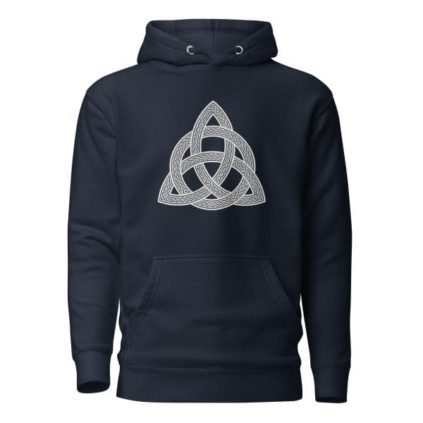 The Trinity Knot, or Triquetra, is an ancient emblem deeply woven into the fabric of Irish Celtic heritage. In this powerful full-front graphic, this timeless symbol of unending love, strength, and life’s interconnectedness serves as a sturdy talisman. Whether you are walking in the footsteps of ancestors or embracing the symbol’s spiritual and historical depth for your own journey, this hoodie is a wearable tribute to enduring faith and rugged resilience.